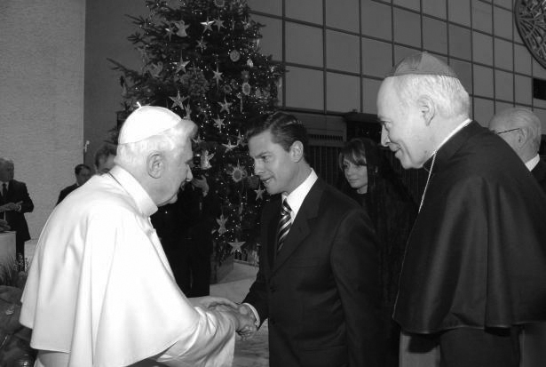 No debiera sorprendernos, pues, que ese mismo estandarte siga siendo utilizado implícitamente entre los dirigentes e instituciones mediáticas del país (Televisa, TV Azteca, por ejemplo); después de todo, la iglesia misma sigue jugando un papel muy importante en la vida política, al grado de que hemos podido ver la visita de EPN al Vaticano en 2009, donde reiteró su «devoción y filiación al Opus Dei», hasta la bendición matrimonial entre éste y Angélica Rivera en 2010 (como puede verse en este artículo de Sin Embargo).