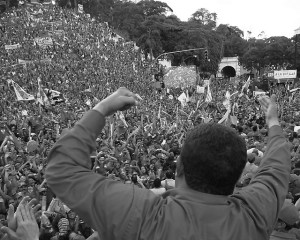 Venezolanxs con líder. (Foto: Anghel Morales.)
