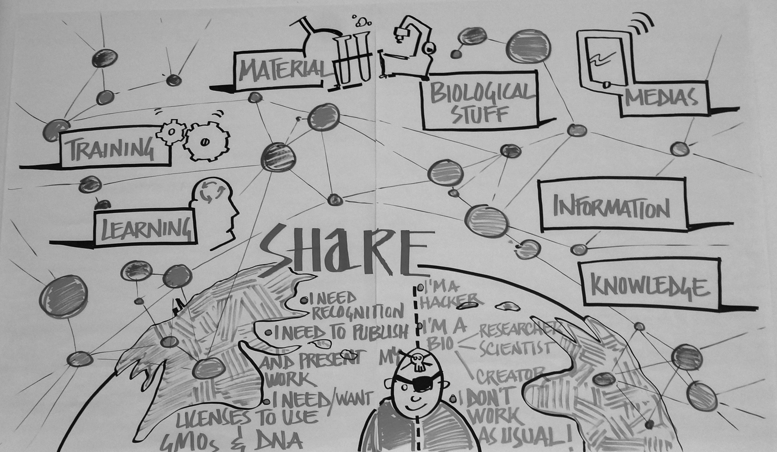 Estas organizaciones suelen estar constituidas por académicos jóvenes, formados en centros académicos de vanguardia, y se caracterizan por defender el intercambio libre y abierto de información, por integrar actores que habitualmente están al margen del trabajo científico (es decir, los no científicos) y por el uso de internet como espacio de expresión y organización. La pugna de Diybio por la apertura del conocimiento puede entenderse como paralela al surgimiento del movimiento open source y de la creación de licencias públicas durante las últimas tres décadas del siglo XX. Los lugares en donde ambos movimientos (Diybio y open source) surgen y se desarrollan son coincidentes: a saber, Massachusetts y la bahía de San Francisco.