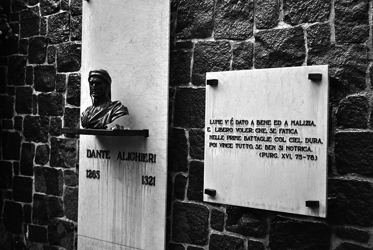 Dante a la entrada de la FFyL: «Una luz para el bien y el mal os dieron.» (Traducción: ciudadseva.com.)