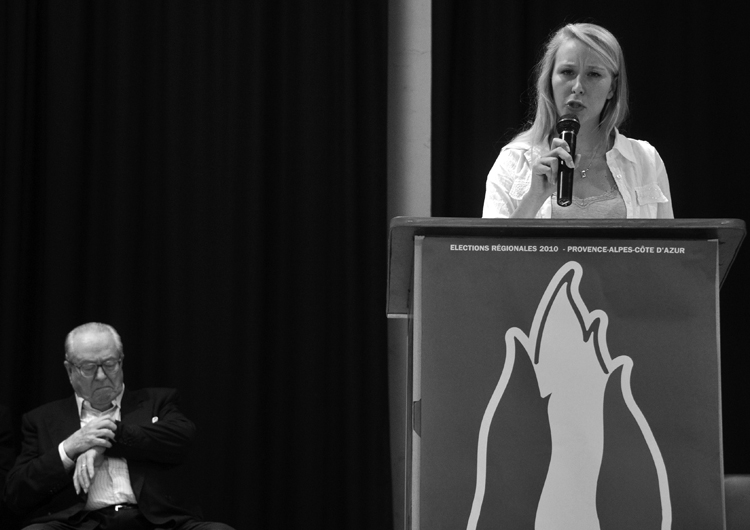 Marion Marechal-Le Pen con su abuelo, Jean-Marie Le Pen, en 2012. (Foto: Boris Horvat, AFP.)