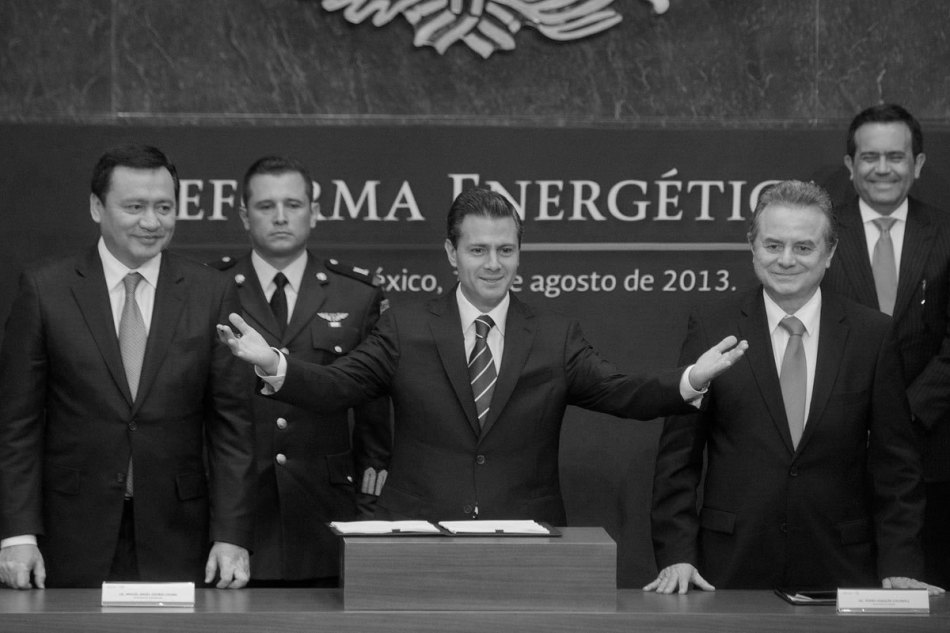 El 20 de diciembre de 2013 se finiquitó el proceso para la modificación de los artículos 25, 27 y 28 constitucionales, que abrirían la puerta a la inversión privada en sectores estratégicos del aprovechamiento de los hidrocarburos. En la ceremonia preparada para lo que hasta ahora ha sido una de las reformas más publicitadas e importantes de la actual administración, el encargado del Ejecutivo dijo: “los mexicanos hemos decidido superar mitos y tabúes para dar un gran paso hacia el futuro a través de sus instituciones democráticas. México se ha pronunciado en favor del cambio y la transformación”. Al hablar de los beneficios que traerían dichas modificaciones al texto constitucional Peña dijo que se podrían explotar los abundantes yacimientos de hidrocarburos que hasta ese momento no habían sido rentables para Pemex; el país contaría con más recursos financieros del sector privado y tecnologías de punta; México crecería más rápido, generando oportunidades de desarrollo y empleo para cientos de miles de ciudadanos. Además, dijo, se elevarían la productividad y competitividad de toda la economía nacional; la oferta de trabajo especializado crecería; se apoyaría la economía de las familias mexicanas al reducir el costo de la luz y el gas; contribuiría a tener mejores precios de alimentos; se producirían energéticos más limpios; se facilitaría el despliegue de las energías renovables y la cogeneración de energía; se implementaría el Fondo Mexicano del Petróleo para la Estabilización y el Desarrollo, y se fortalecerían los órganos reguladores del Estado en materia de energía. Muchas fueron las promesas y triunfalista el tono.