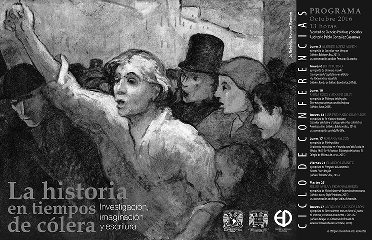 Entre el 3 y el 27 de octubre, 2016, en la Facultad de Ciencias Políticas y Sociales de la UNAM se celebró el ciclo de conferencias La historia en tiempos de cólera: Investigación, imaginación y escritura, organizado por Adolfo Gilly, Édgar Urbina Sacristán y Luis Fernando Granados. Dada la altísima calidad de casi todas sesiones, nos ha parecido pertinente compartilas aqui.