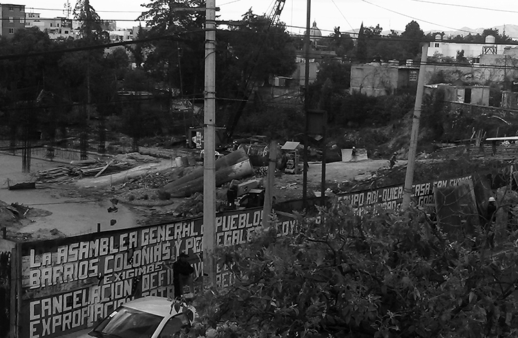 Los vecinos instalaron un plantón indefinido, porque consideraron que la construcción de departamentos de lujo en esa zona implicaría problemas de desplazamientos además de saturación y concentración de los servicios; es decir, profundizaría las desigualdades, obstruyendo los procesos comunitarios de vida y organización fundamentales para las colonias, barrios y pueblos aledaños.