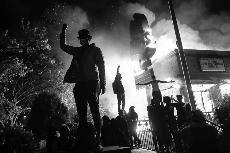 Por el momento tenemos sólo algunos indicios sobre lo que la marea popular imagina que es la justicia, pero ha quedado muy claro qué no lo es. Por ello el anuncio del arresto del oficial Derek Chauvin y su procesamiento por homicidio culposo no ha sido razón suficiente para abandonar las calles ni ha logrado reducir los ataques violentos a la propiedad. Tampoco lo han logrado los numerosos acercamientos de jefes de policía arrodillados “en apoyo” a las protestas. Ni siquiera la noticia de la elevación a segundo grado de los cargos por asesinato contra Chauvin y sus tres compañeros. Aun menos exitosos han sido los despliegues de fuerza y represión contra las concentraciones masivas. Queda todavía por ver si estos sentimientos y razonamientos son suficientes para mantener viva la llama de las acciones colectivas hasta alcanzar algo de la justicia anhelada, o si continuará el terror anunciado por Marx.